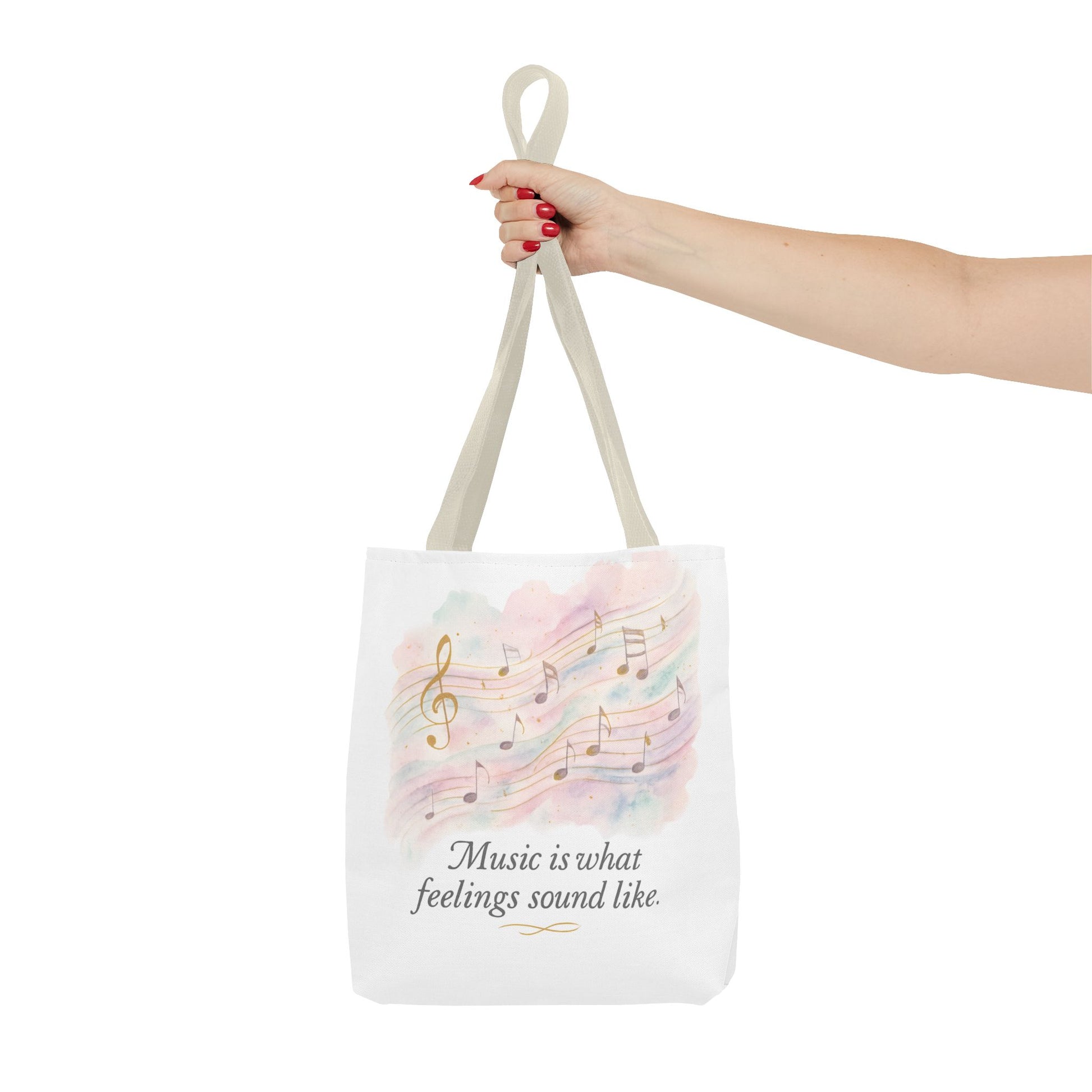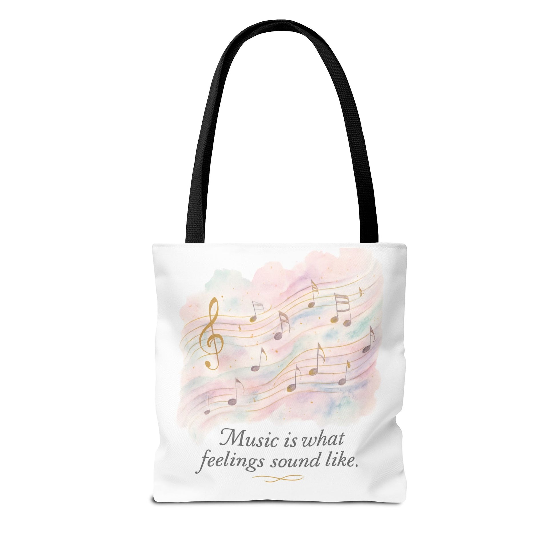 Music Quote Tote Bag — "Music is what feelings sound like" Watercolor Notes