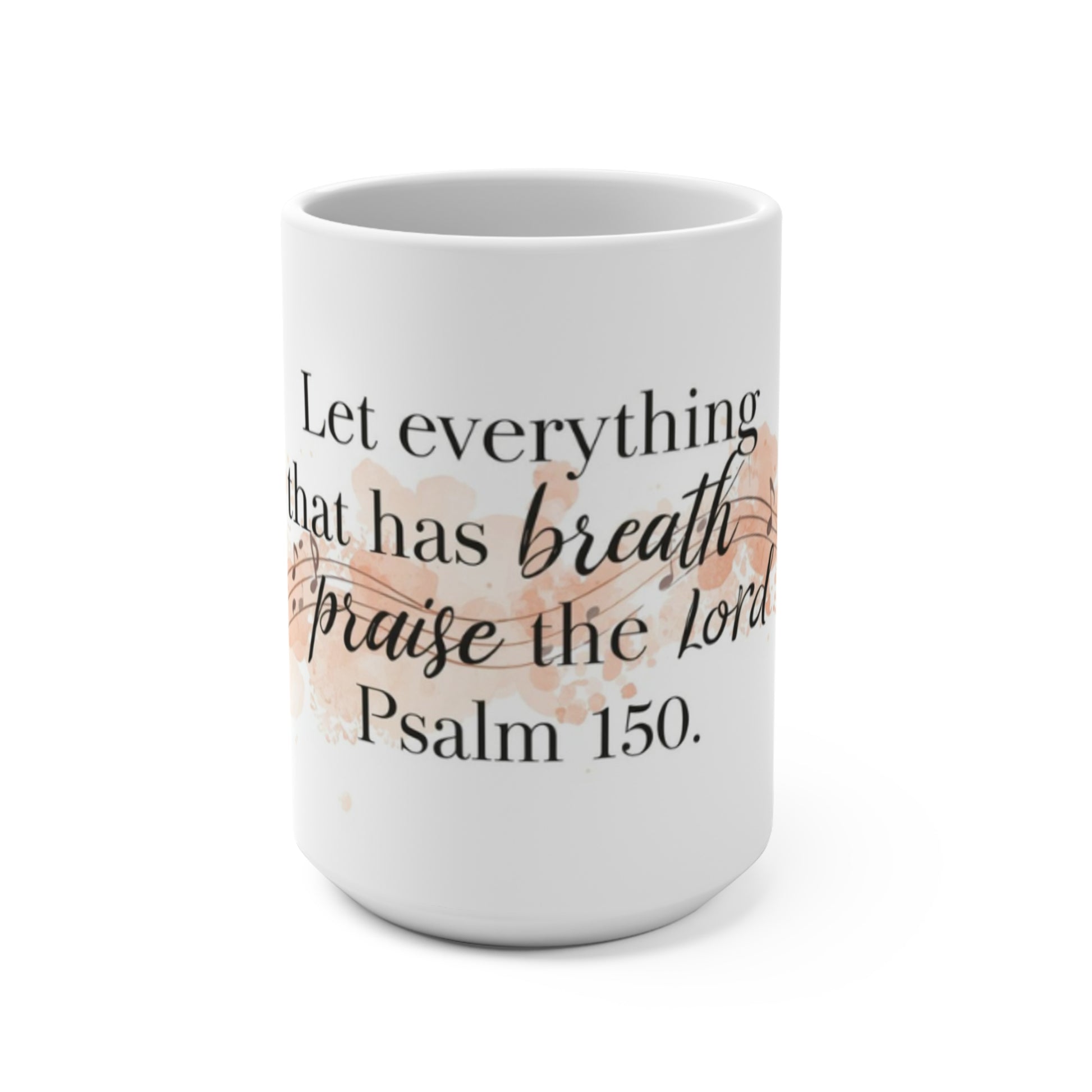 Psalm 150 Coffee Mug — "Let Everything That Has Breath Praise the Lord" 15oz Inspirational Christian Mug