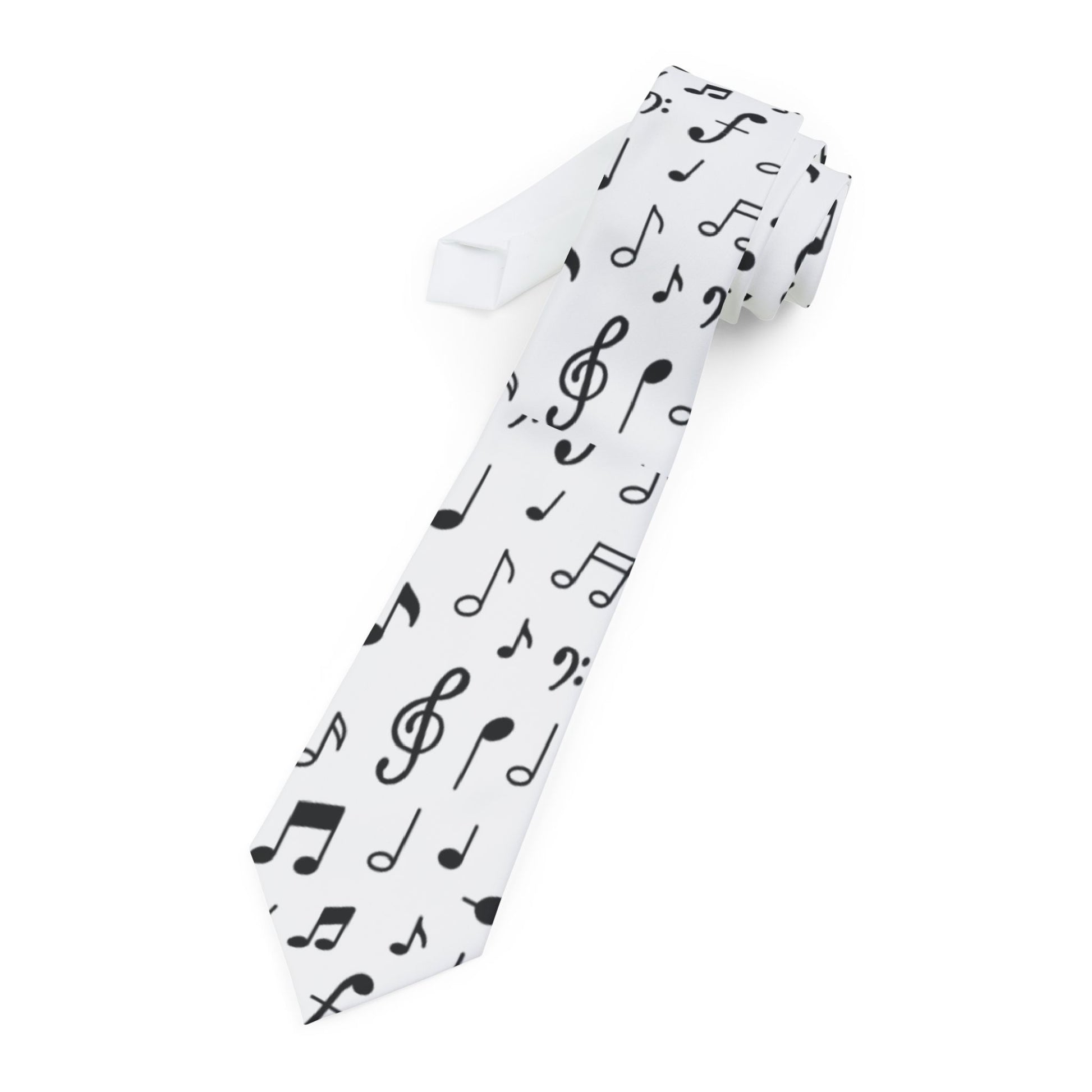 White Necktie with Black Music Notes – Music Lover Tie for Musicians, Band, Concerts & Gifts